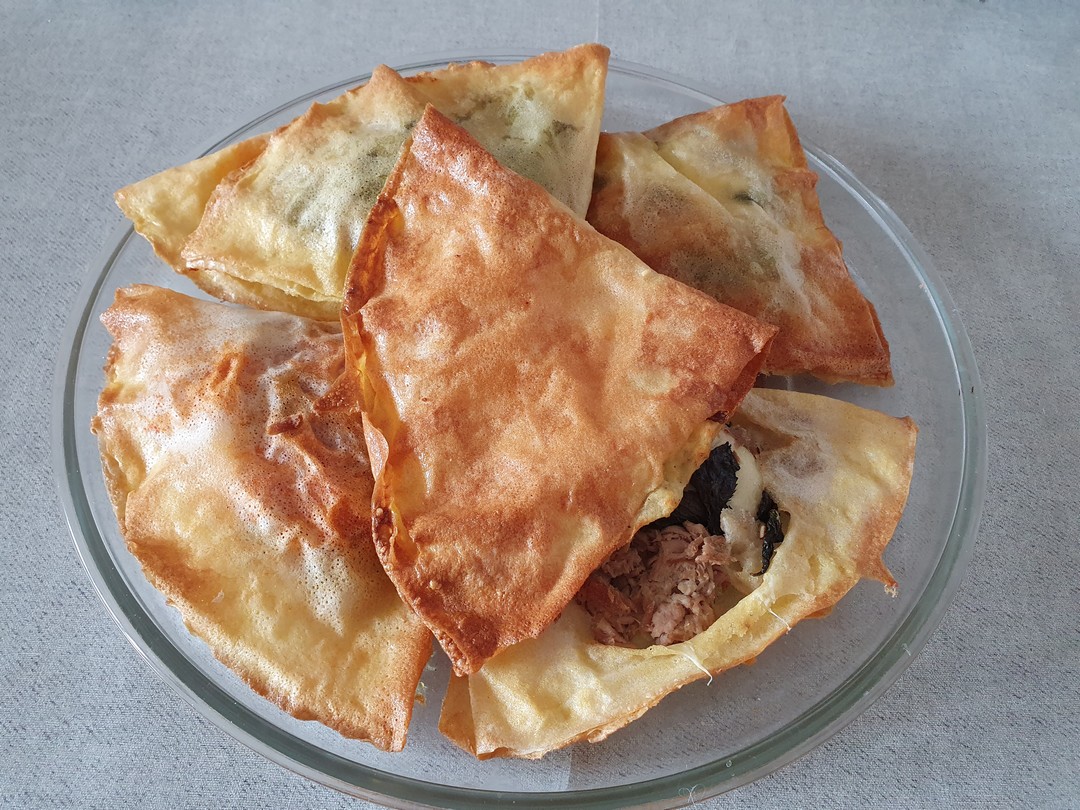 Préparé à partir d'une feuille de pâte très fine, à base de farine et de semoule de blé, façonnée généralement en un triangle fourré et frit.