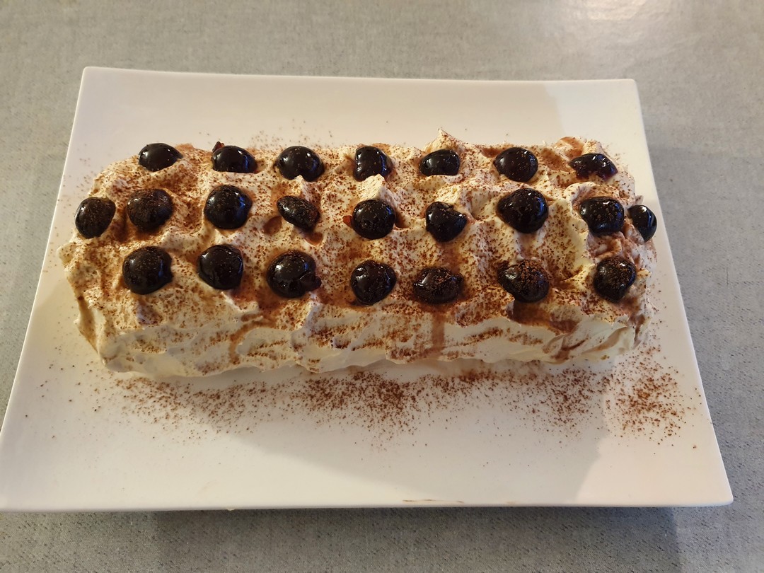 Gâteau de Noël, fait d'un biscuit roulé, fourré de crème et dont le nappage évoque l'écorce d'un arbre.