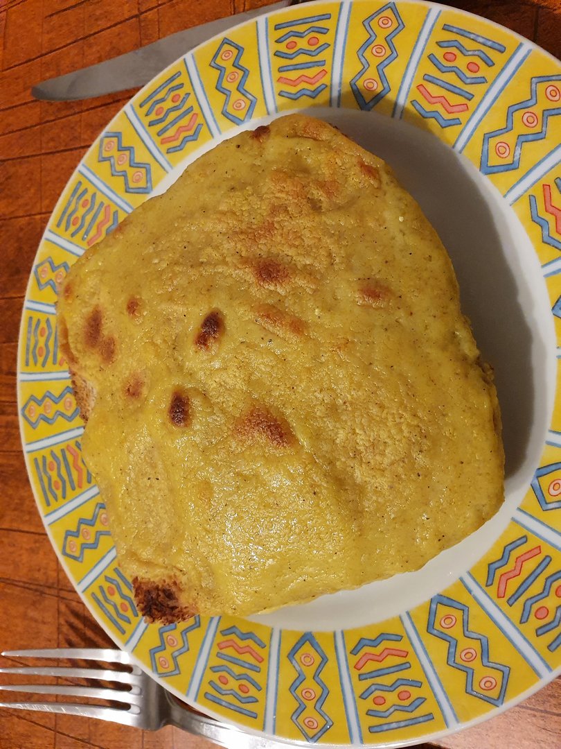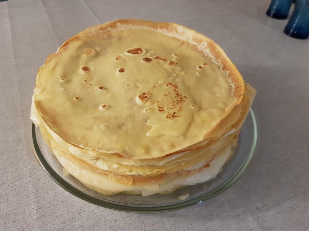 Galette mince faite d'un mélange fluide de farine, d'œufs et de lait ou d'eau, cuit à la poêle ou sur une plaque.