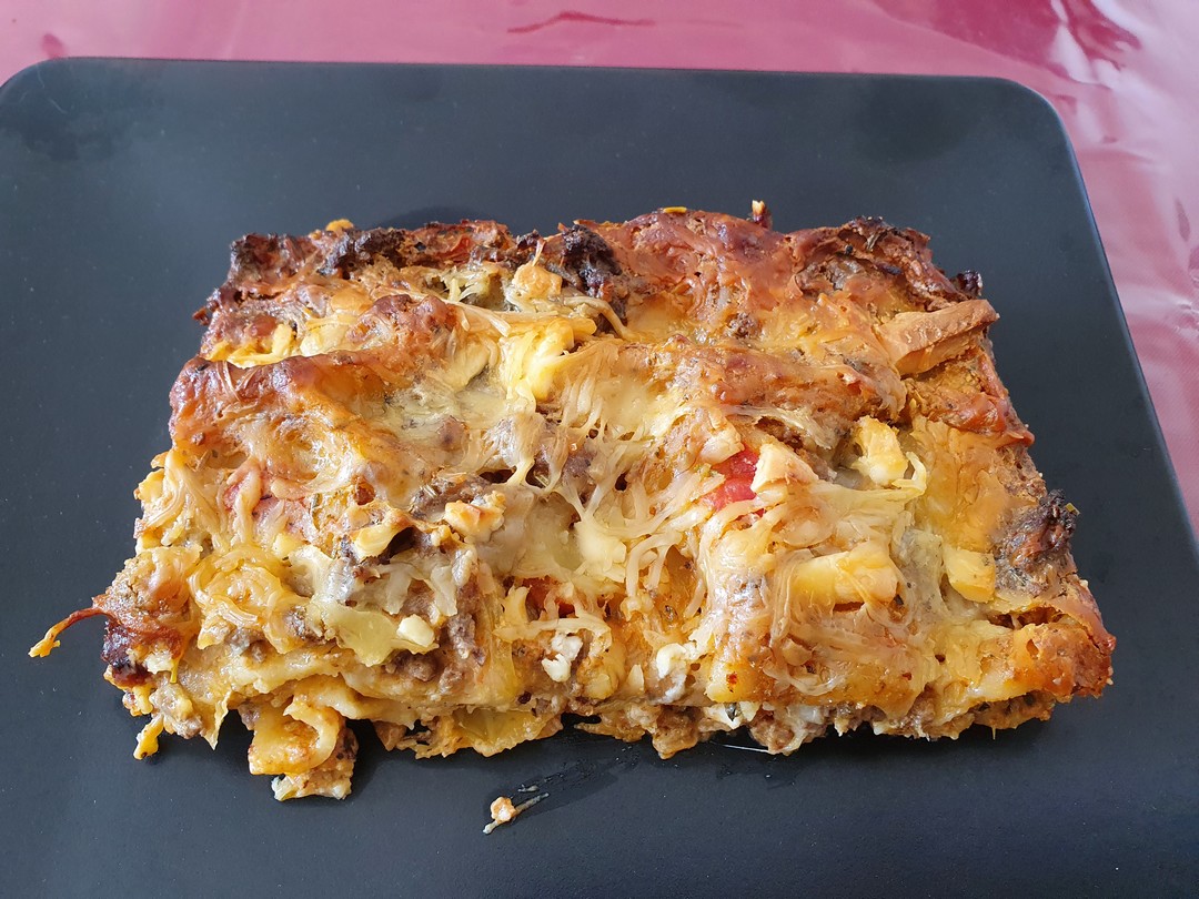 Recette de cuisine italienne à base de couches alternées de pâtes lasagnes, parmesan, mozzarella, ou ricotta, et de sauce bolognaise ou sauce béchamel, gratiné au four.