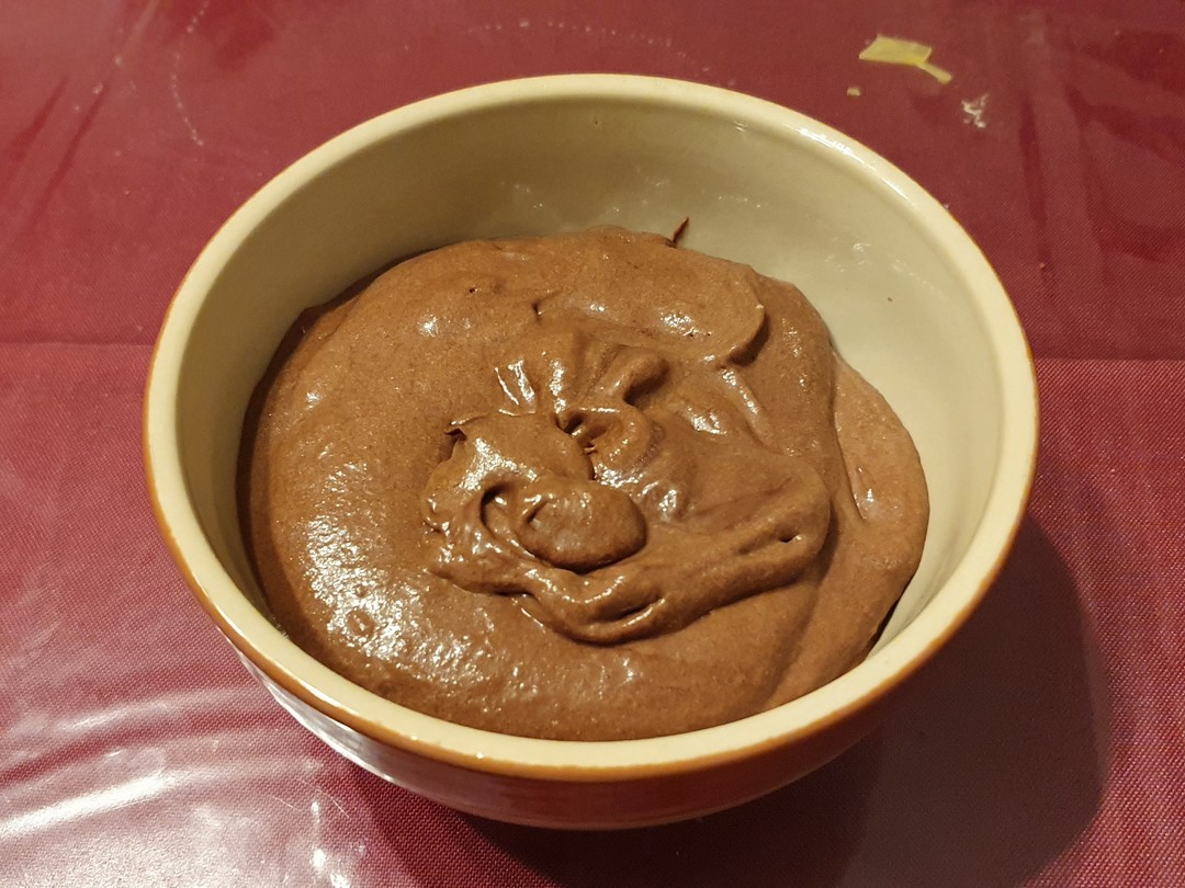 Dessert à base de chocolat, de jaunes d'œufs et de blancs d'œufs en neige.