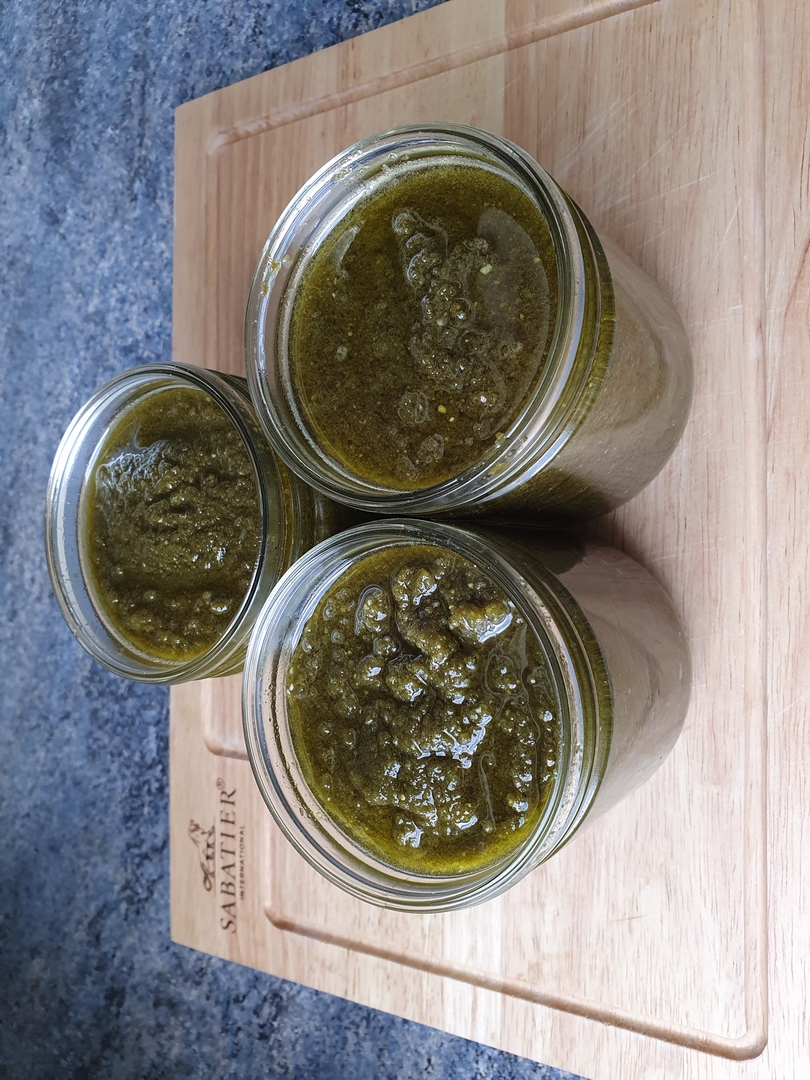 Préparation culinaire italienne, à base de feuilles de basilic, d’ail, de parmesan et de pignons pilés au mortier et liés à l’huile d’olive.