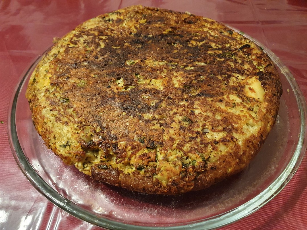 Omelette épaisse garnie de pommes de terre avec des oignons et typiquement espagnole.