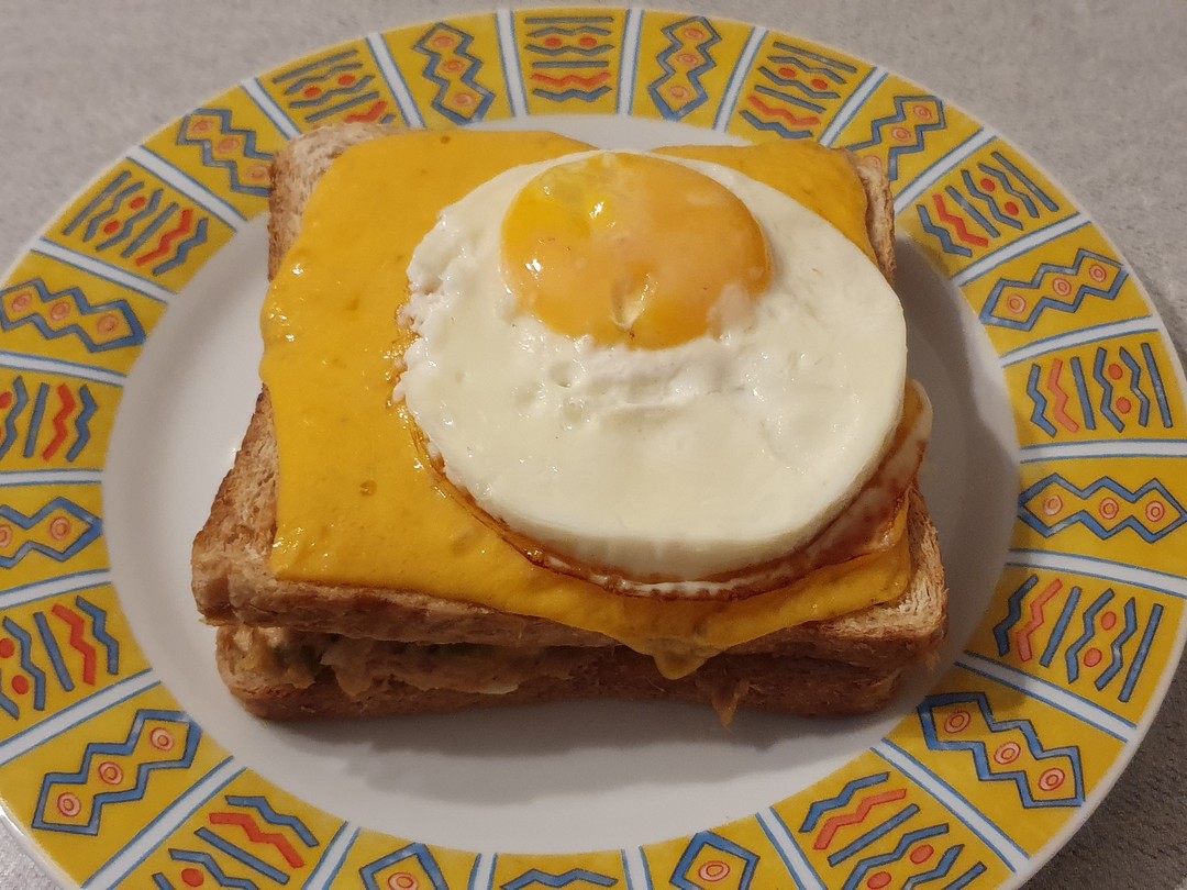 Un croque-monsieur ou croquemonsieur est un sandwich chaud, originaire de France, à base de pain, de jambon blanc et de fromage.