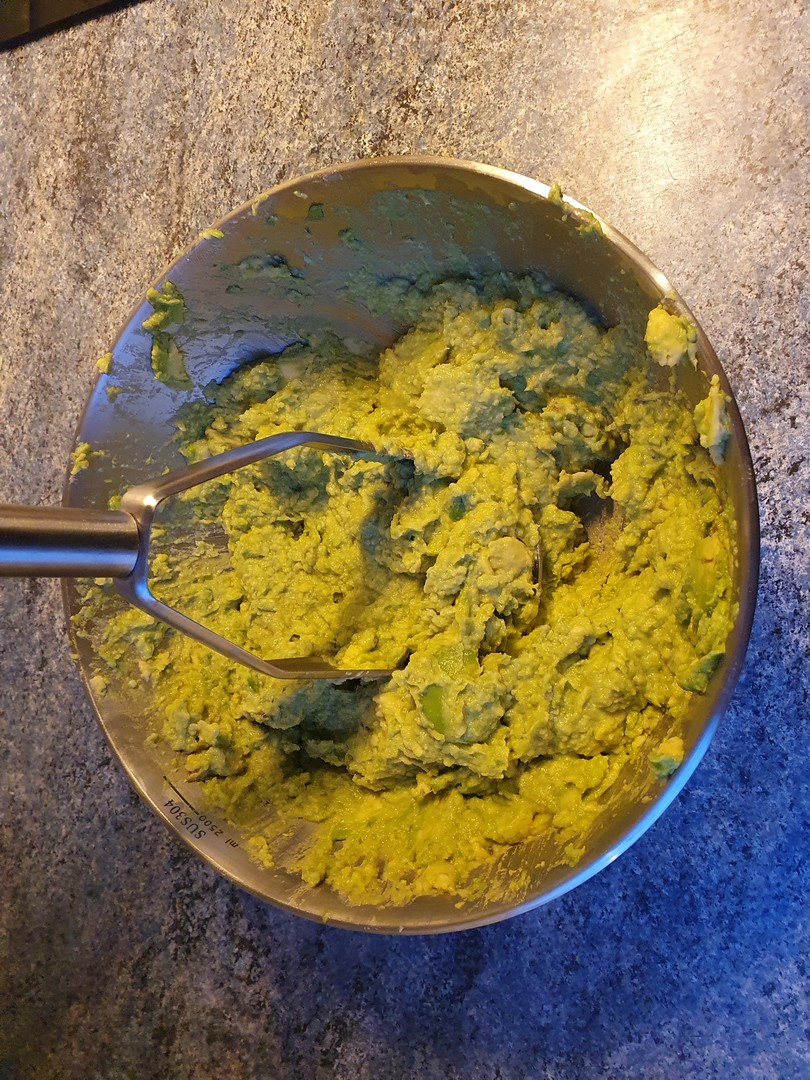 Préparation culinaire d'origine mexicaine faite d’avocat, de piment frais, de coriandre fraîche, d'oignons, de tomates, de jus de lime ou de citron, de sel.