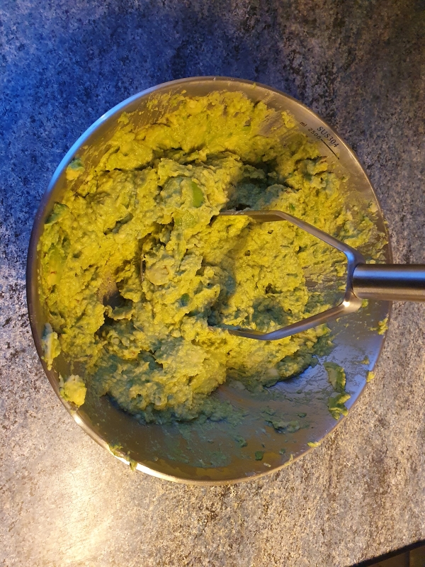 Vider les avocats dans un saladier et les écraser grossièrement au Presse-purée ou à la fourchette.