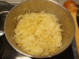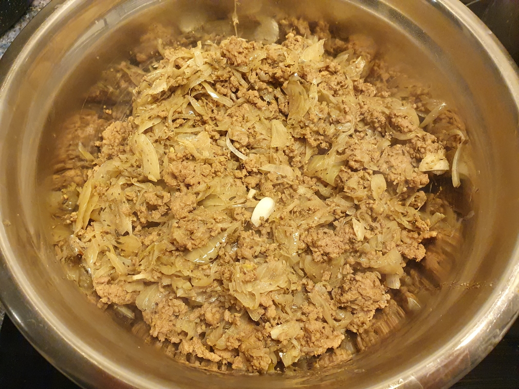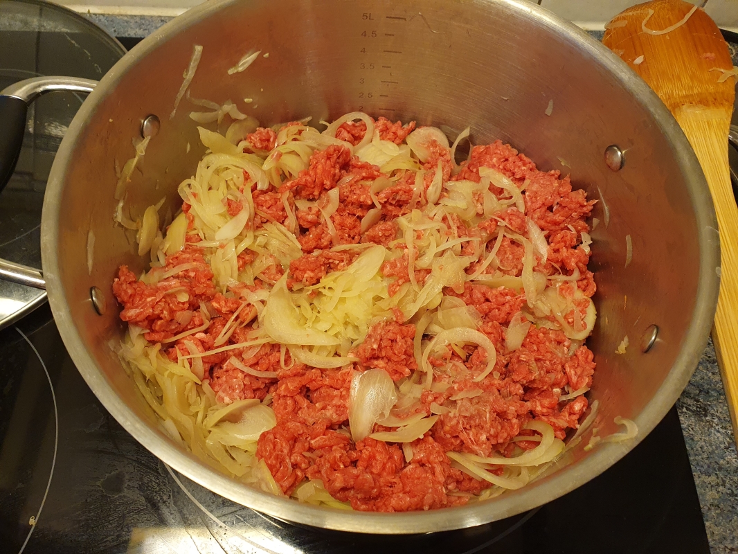 Faire revenir la viande haché, avec un oignon et un filet d'huile d'olive.