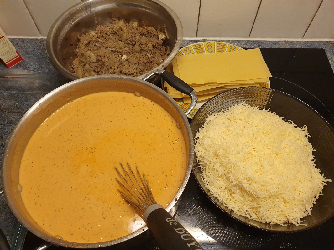 - Alterner une couche de sauce avec une couche de fromage rapé et une couche de pâte à Lasagnes.