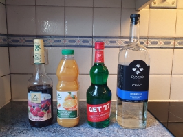 Dans un verre long, remplir de glace et verser le sirop de grenadine.