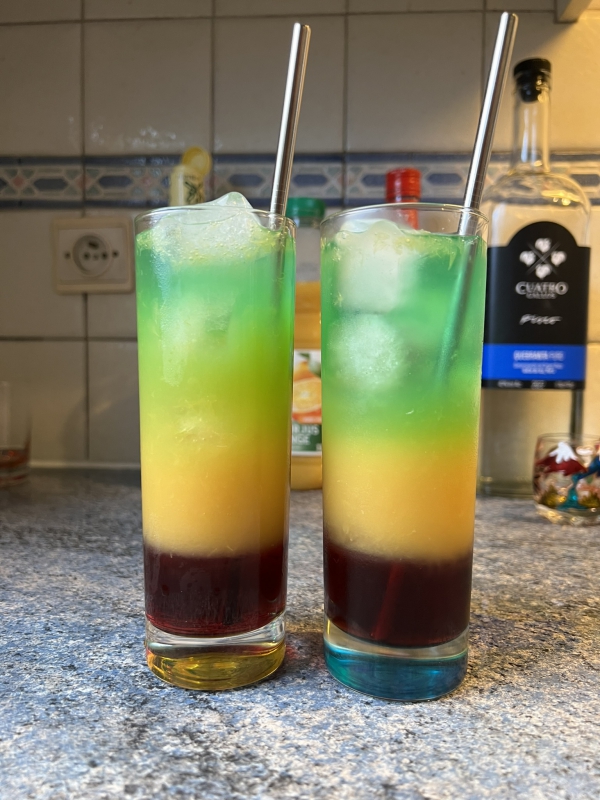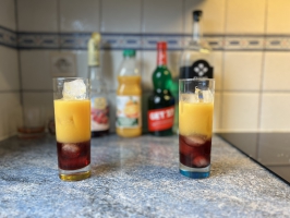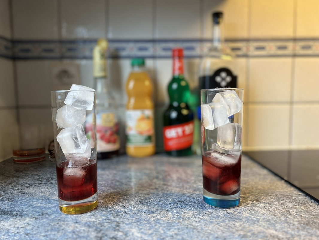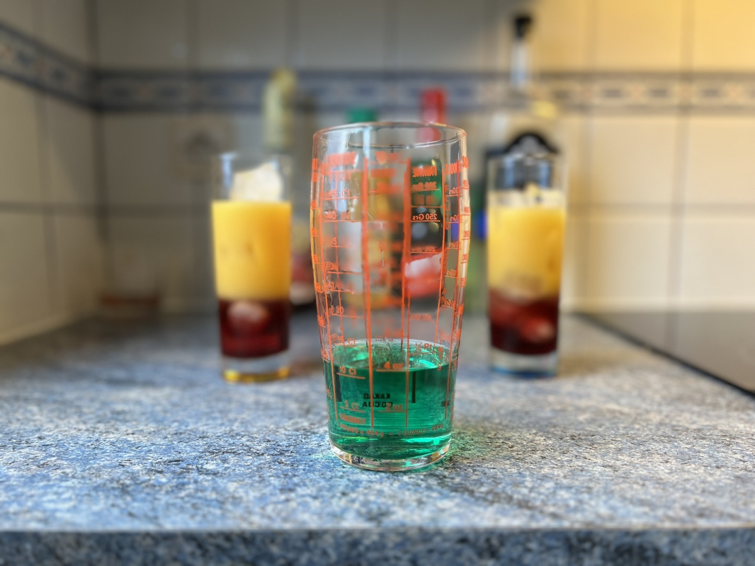 Verser progressivement le mélange dans le verre sur le dos d'une cuillère pour éviter de mélanger les liquides.