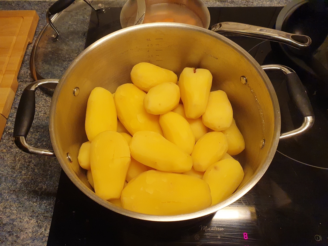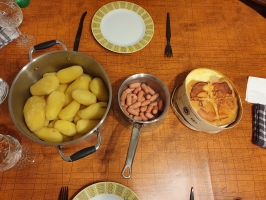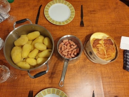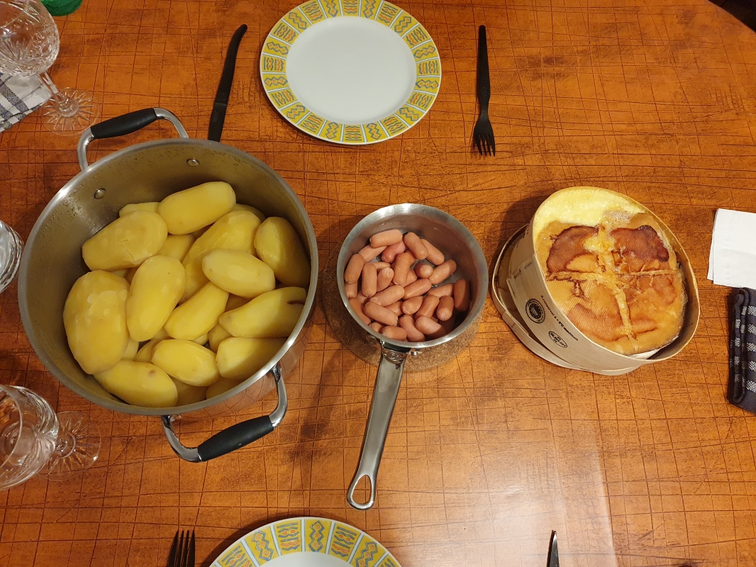 Accompagnez de pommes de terre vapeur, de charcuterie, et d'un vin blanc.