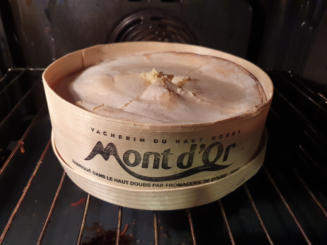 Prenez votre Mont d'Or, faites un trou au milieu dans lequel vous verserez un peu de vin blanc.