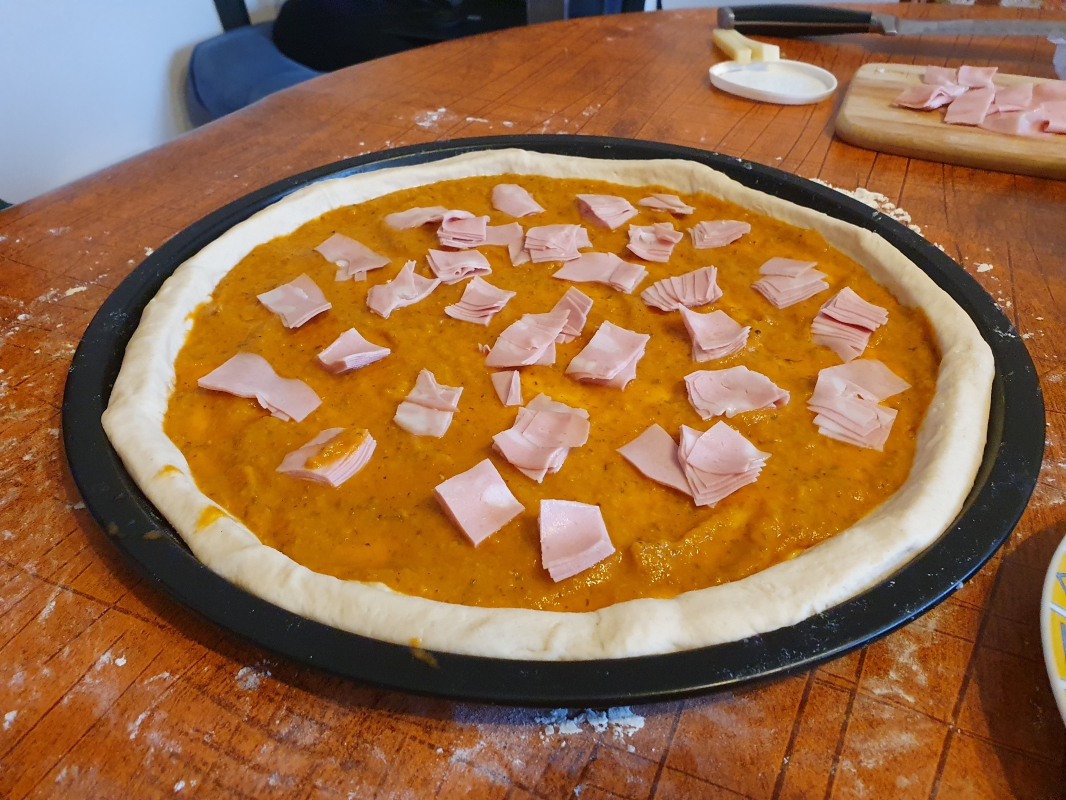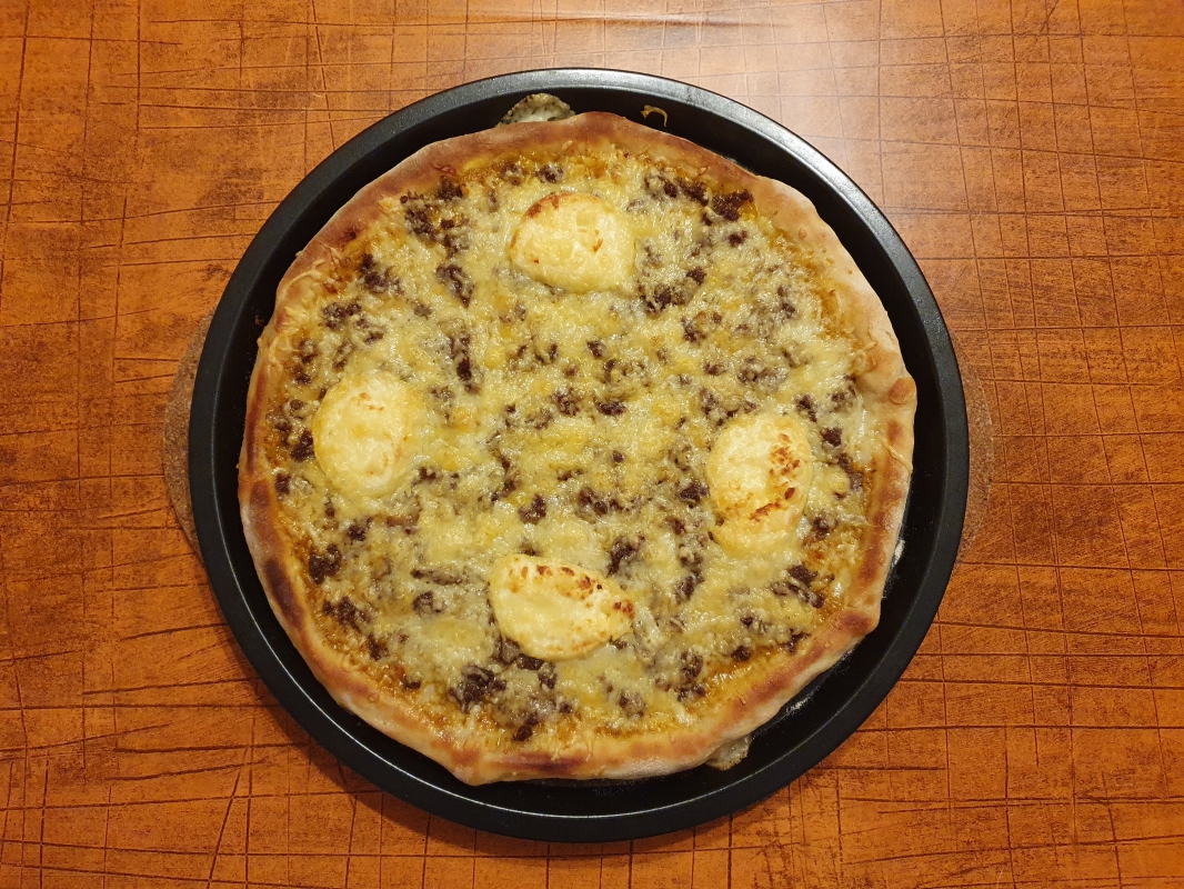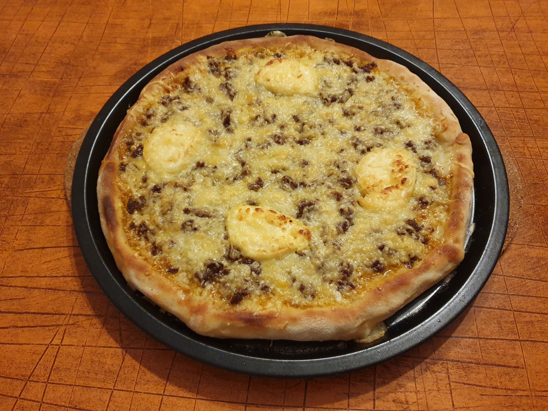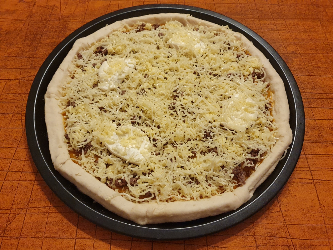 Ajouter la viande hachée ou le jambon, et recouvrir par les fromages.