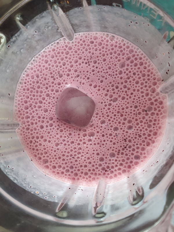 Ajouter le lait, le sucre, les glaçons et mixer.