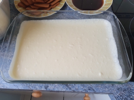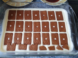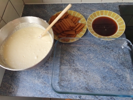 Alterner une couche de crème avec une couche de spéculoos préalablement trempés dans le café.